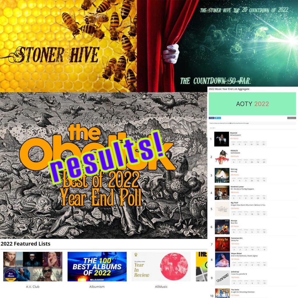 Joop Konrad has been doing this since 2009 and continues to spotlight the cream of the stoner/psych/doom crop, with the help of 164 voters. Probably the most diverse sampling of the international heavy music community, not even Doom Charts (which Joop plays a key role in, and will publish it’s 2022 list soon) gets as many contributors. Given that exactly zero of these albums have crossed over to the mainstream, as tracked by the AOTY aggregate of year-end lists, one would think this community is so underground that they don’t matter. Hogwash. Year after year they sustain the growth of festivals like Roadburn, multiple Desert Fests, and Psycho Las Vegas among others, which proves the heavy underground is in rude health, and not going away.