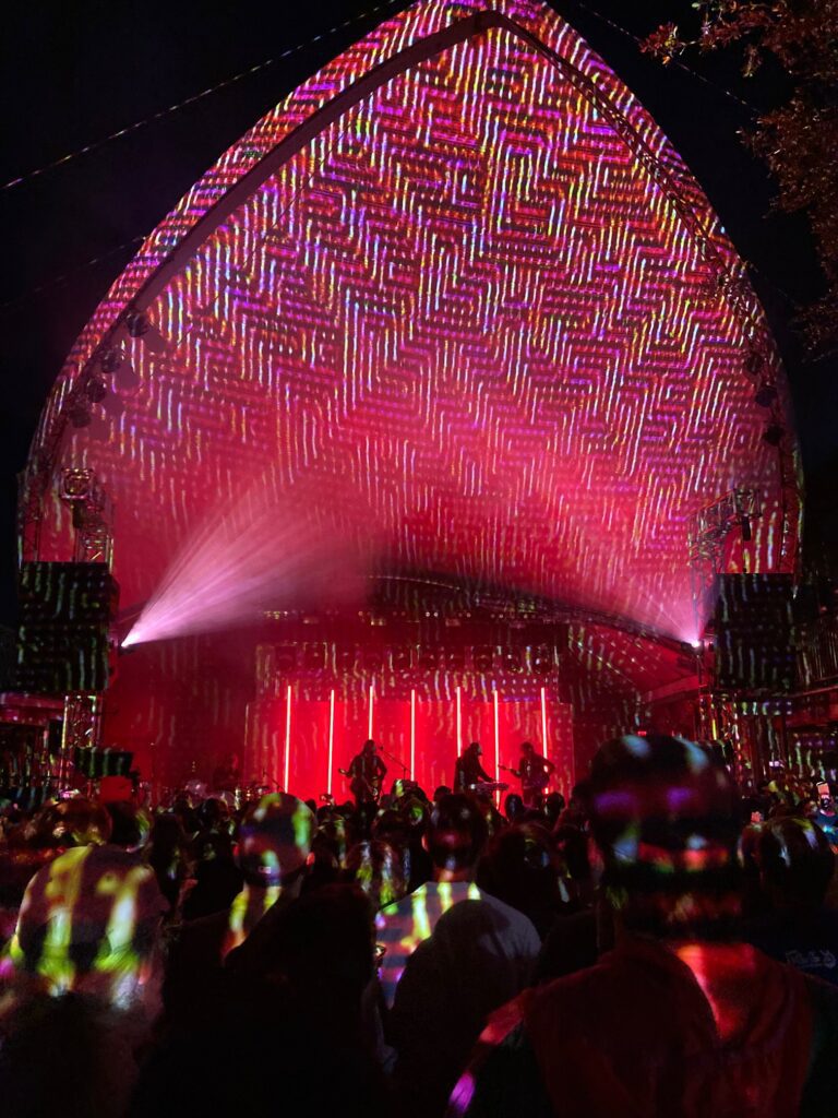 I last saw the Black Angels in 2014 touring with Roky Erickson. After a practically secret sold out album release show at The 13th Floor on September 16, this is a far more dramatic celebration of their best album, Wilderness of Mirrors (see review). On a perfect fall night, the sound outdoors was great, except for occasionally the throbbing bass got distorted and overwhelmed the sound (nearly all the members have played bass at some point in recordings, so I won’t call out the culprit). The set appropriately was weighted toward the new album with 9 songs, plus four from the still popular debut Passover (2006), one from Phosphene Dream (2010) and two from Indigo Meadow (2013), nothing from Death Song (2017). It was a nice moment near the end of the fest, lots of people wearing costumes, a spider web extended over the entire audience, and giant killer spiders were defeated by the band with lasers shooting from their instruments. Kidding about that last part. The abstract light show was plenty psychedelic though. With a growing audience and one of the best albums of the year, the word of Levitation and The Black Angels should continue to spread far and wide.