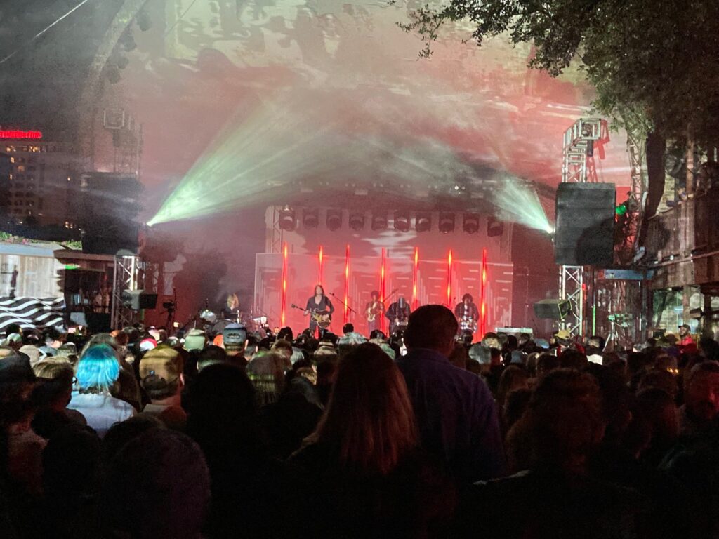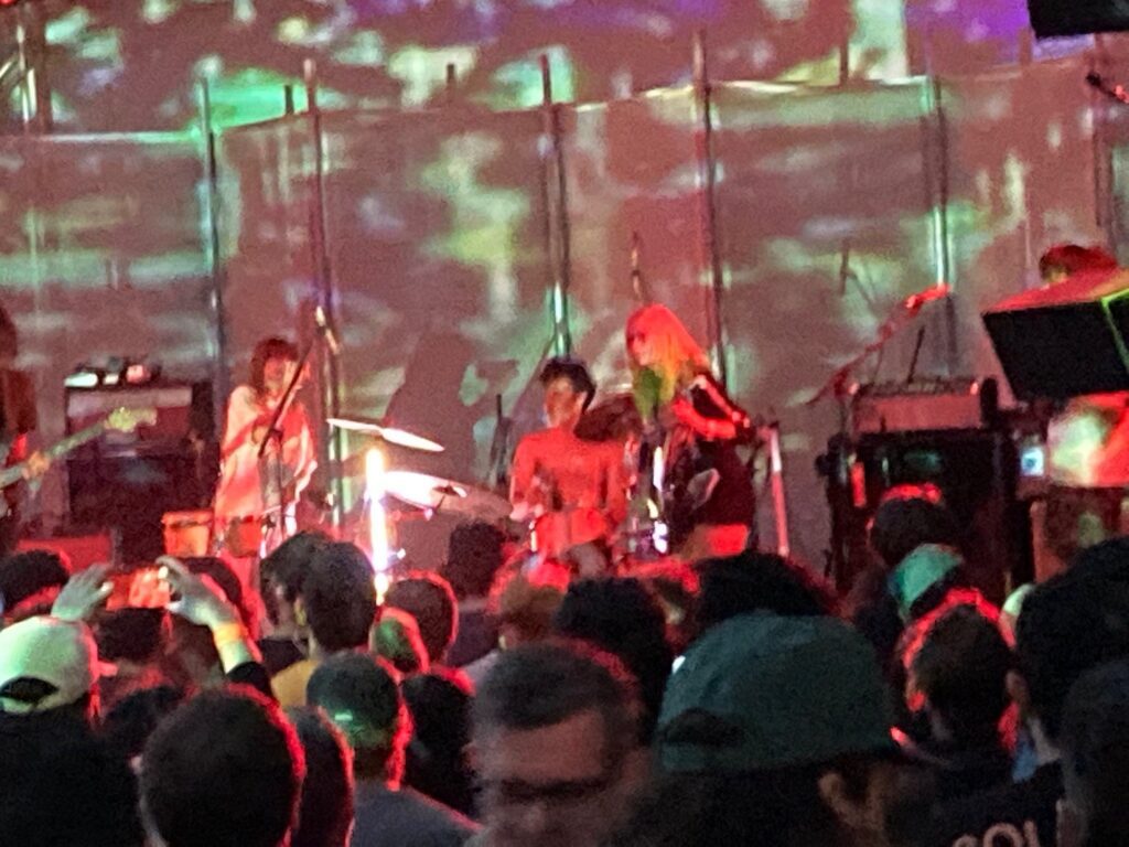 What a month for this Melbourne band, formed in 2010. In October they released albums #21, 22 and 23 with Ice, Death, Planets, Lungs, Mushrooms and Lava, Laminated Denim and Changes. The prolific band has already toured the U.S. several times in their twelve years, impressive coming all the way from down under. And now they headlined not one but two nights at Levitation. Through hard work and a fairly high success rate in recordings, though they cover a lot of stylistic territory, from thrash metal to synthpop, they’ve built up possibly a bigger following than any other band here, including festival founders The Black Angels. They started the set at full velocity with two songs from their 2019 thrash album Infest the Rats’ Nest. Omnium Gatherum, released earlier this year had four songs featured, as well as four consecutive songs each from early album I’m In Your Mind Fuzz (2014) and Murder of the Universe (2017). Three more tracks from albums released this month and one from Oddments (2014) made for a stellar set. I was not put on the list for their second show on Saturday, but they played a completely different set with cuts from the popular Flying Microtonal Banana (2017) and Polygondwanaland (2017). For years I felt like they should focus on releasing one stellar album in a year instead of three to five. But I’ve accepted the band may never do that, as they thrive on the creative freedom of recording whatever inspires them quickly and often.