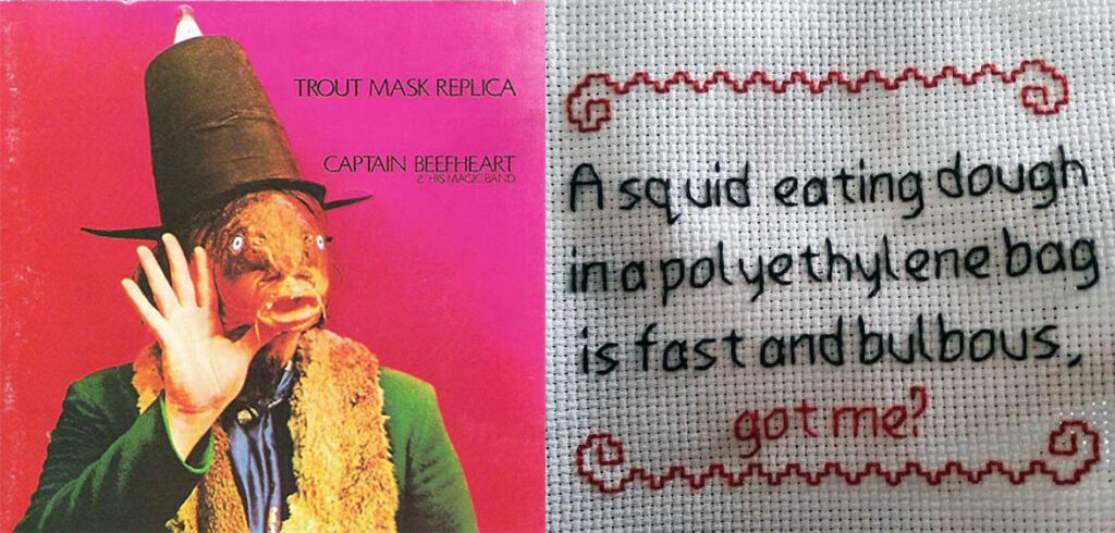 Let’s start with my origin story! When I was young my mom and I lived with my grandparents. My uncle for some reason left his record collection behind (his wife was not a music fan), and by the time I was four, I was playing random records on the basement “console” (what they called the late 50s model TV/radio/stero and bourbon glass storage unit) and discovered what I assumed was a children’s record — Trout Mask Replica, because of the colorful, whimsical cover, goofy names (Zoot Horn Rollo, Captain Beefheart which could have been another alias of Captain Kangaroo). The music seemed suitably chaotic and irreverant to be just for me, and I started repeating the little between-song spoken word bit, “A squid eating dough in a polyethylene bag, is fast ‘n’ bulbous, got me?” No one knew what I was talking about, even my uncle, who’s hippie friend bought him the record and he probably didn’t even make it all the way through. It was the obvious name to call my new website when I started it in October 1995. Years later I had borrowed the album for a long time and I was surprised when he wanted it back. I suppose mainly also wanted his Beatles albums back.